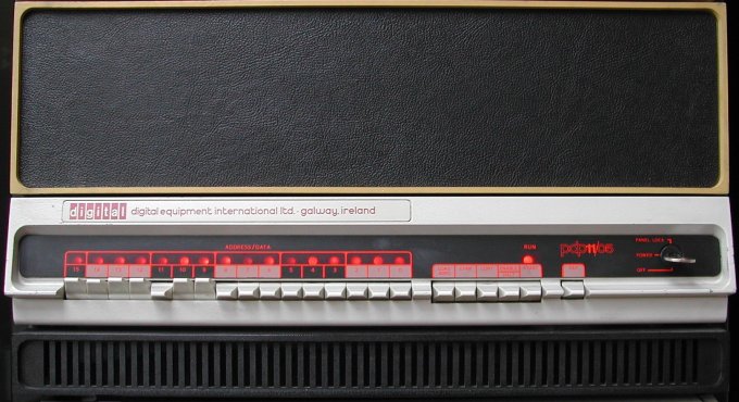 それを箱にいれてマイコンと言うかミニコン風にしようとアルミケースにLEDやSWを付けたものを作りはじめた。スイッチの配列はPDP−11/05を参考にした。奇しくもAltair8800やIMSAI8080によく似た顔になった。IMSAI8080スイッチはPDP−11のスイッチにそっくりだった。このスイッチを付けたかったが、入手できなくて普通のトグルスイッチにした。Altair8800のような顔になったのだった。