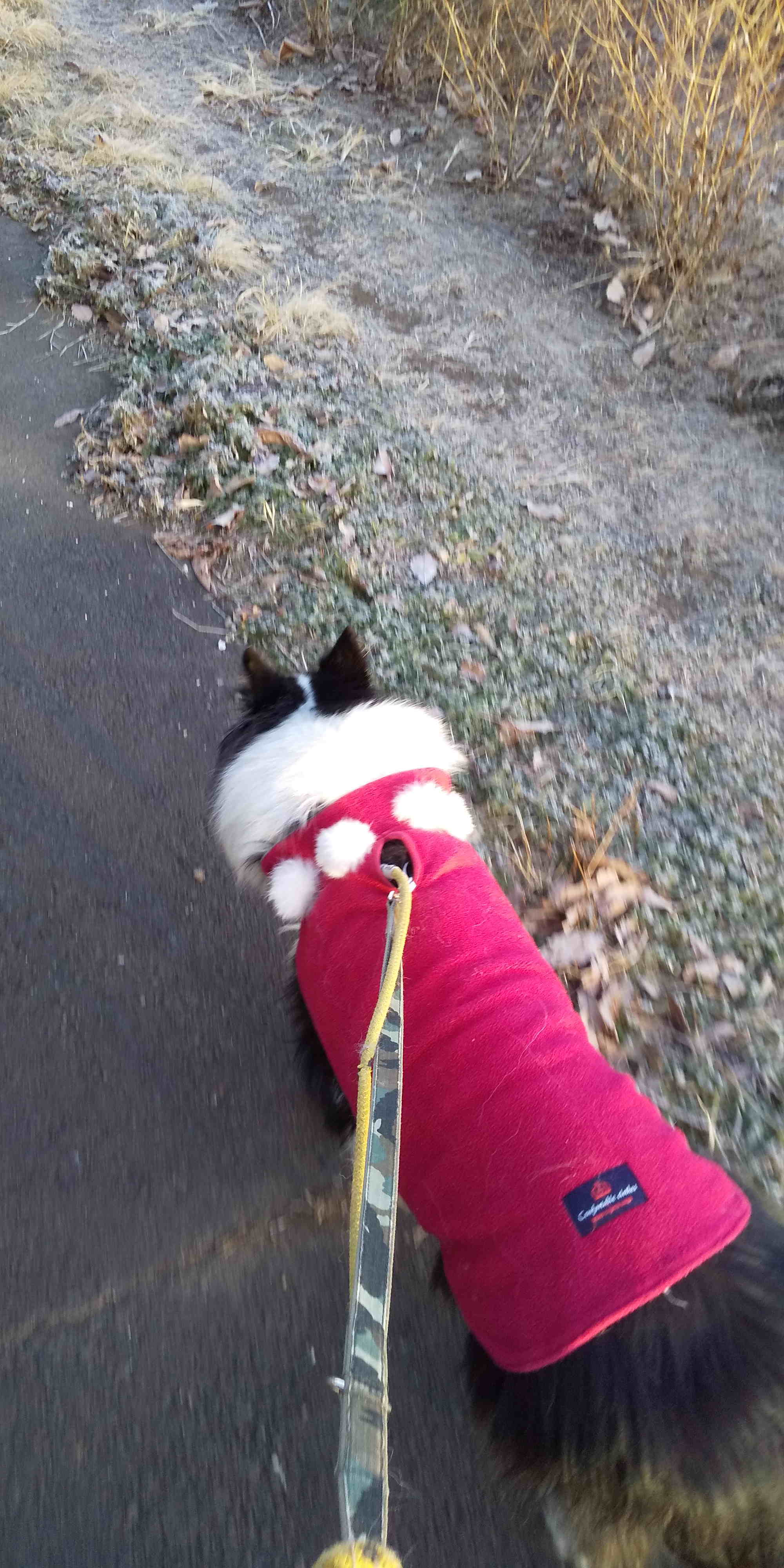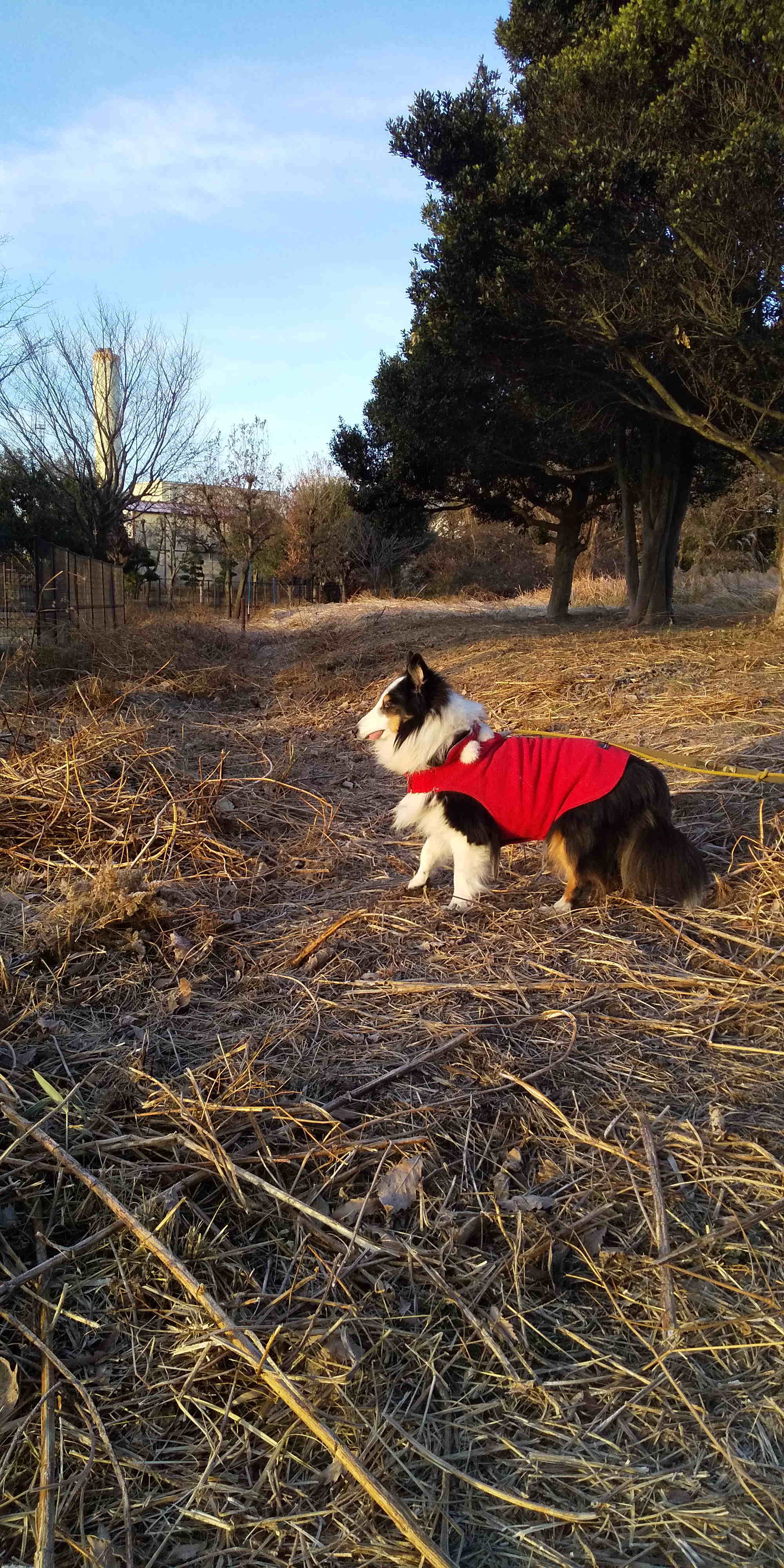 急に寒くなりました。お洋服着て散歩です。 昨年の梅が咲いていたところですが、今年は草ぼうぼうでした。