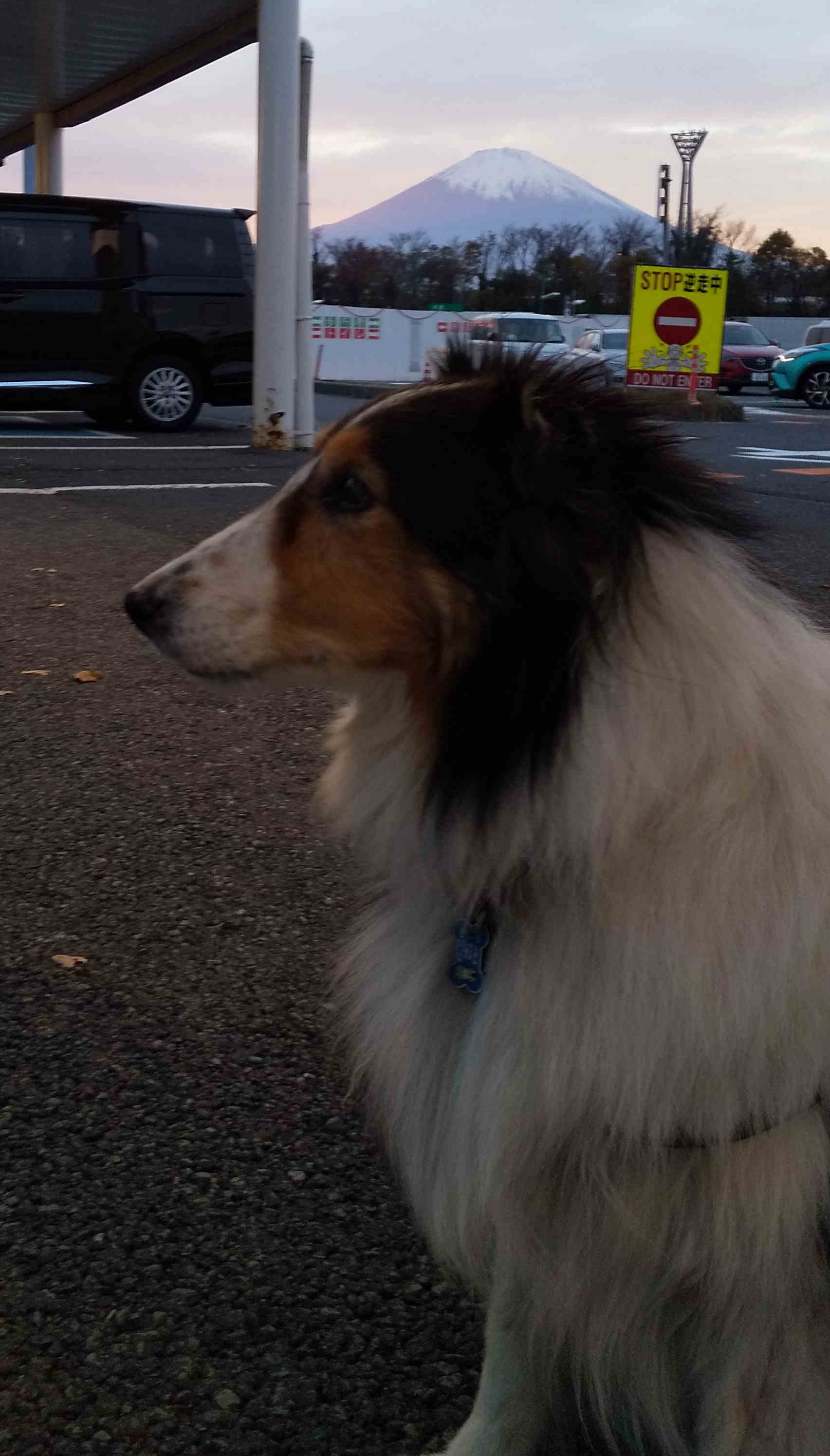 散歩コースから見える富士山に日が当たっていたので拝みました。