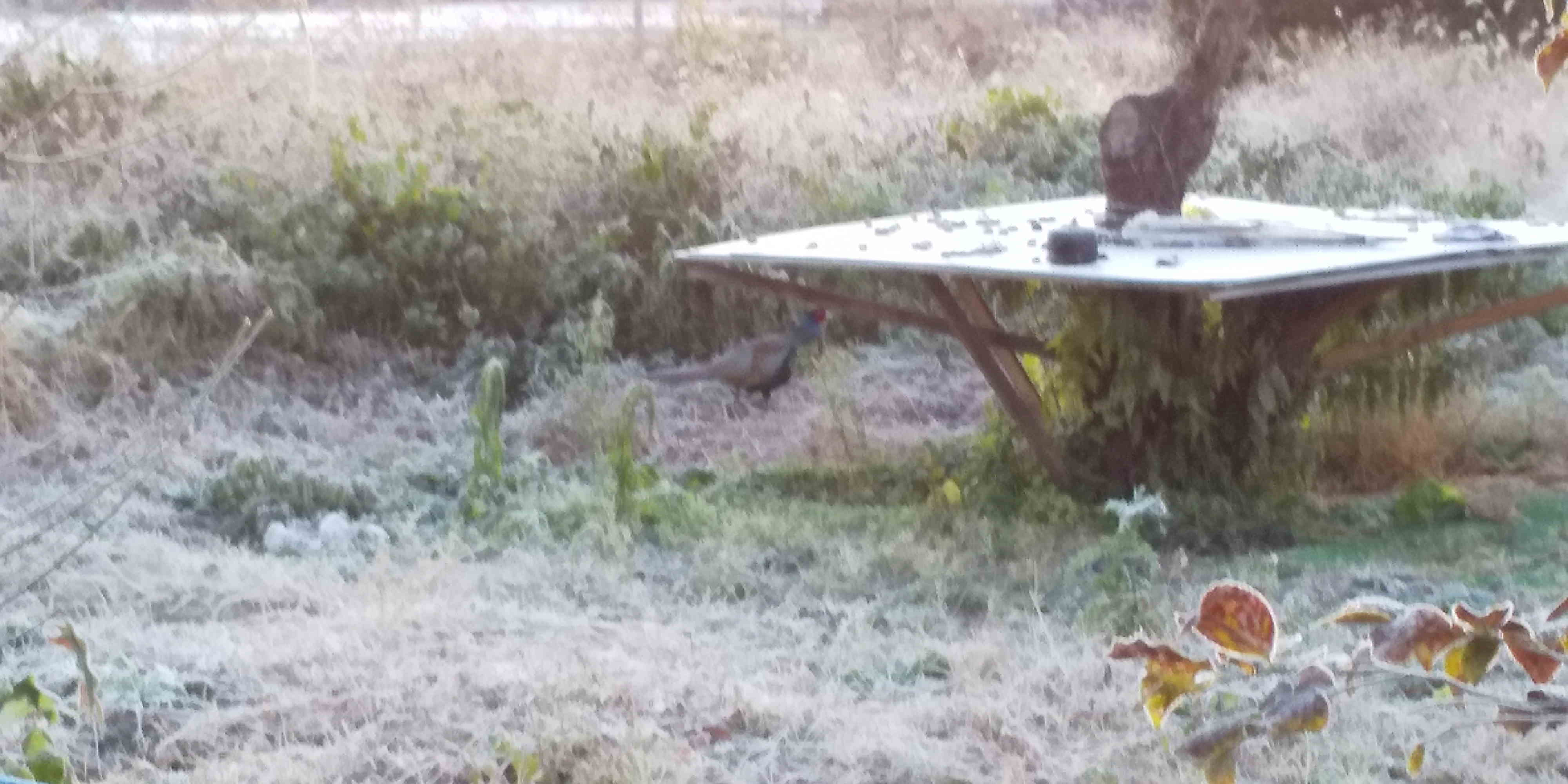 朝の散歩時に雉が鳴いていたので、あわててパチリ。