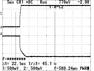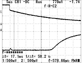 こんな波形である。−12Vの切れるのが25mS遅れている。