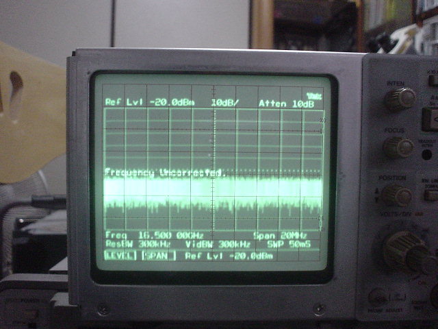 おまけにYTFのフィルタ補正データもフラットネスデータとセットで記憶してあるらしく、24GHzで確認すると、YTFのセンタがずれていて信号が見えない。YTFは手動で補正できるメニューがあり、そこで補正ダイアルを回して調整すると信号が見えるようにはなる。ただし、フラットネスデータが消えているので約10dBほど低く表示される。しかもYTFの調整結果は記憶しない。毎回調整するようだ。