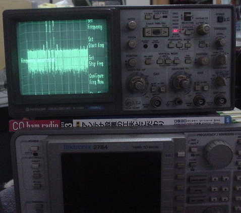 顔の違い、左がスペアナ、右がオシロ。オシロはスケールが入っているのが難点だが・・・。(贅沢は敵だ!)